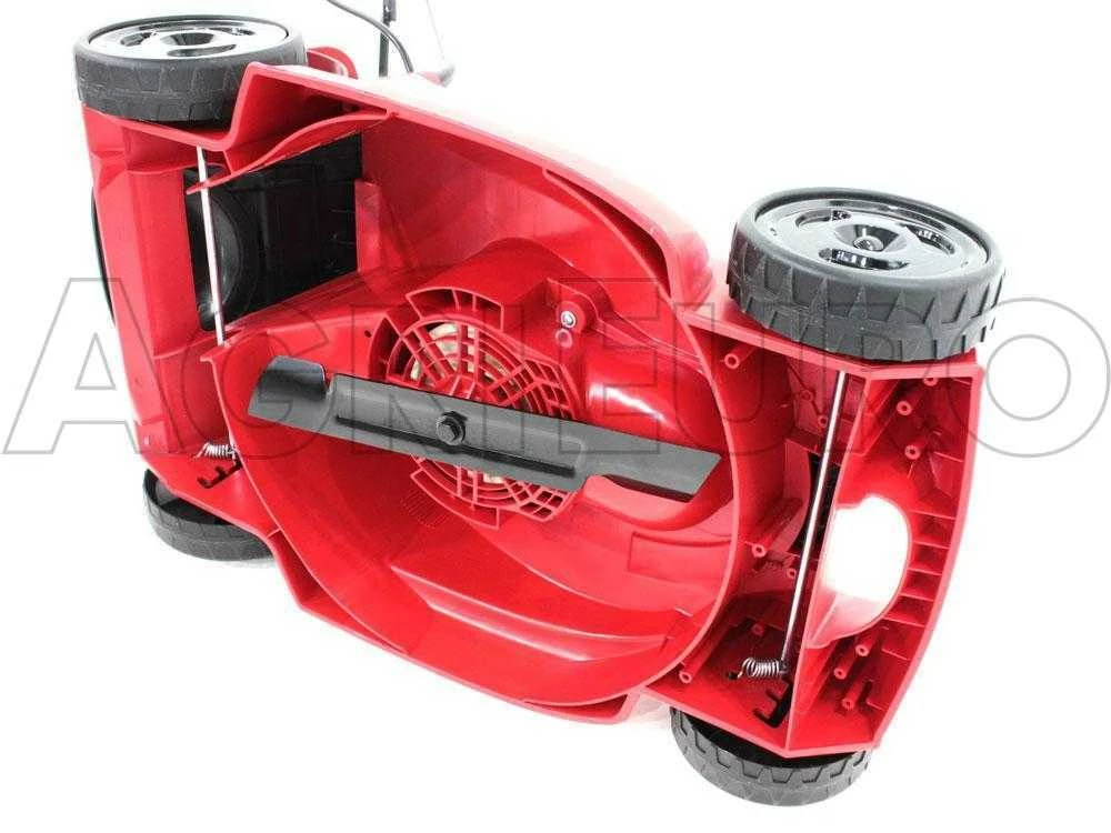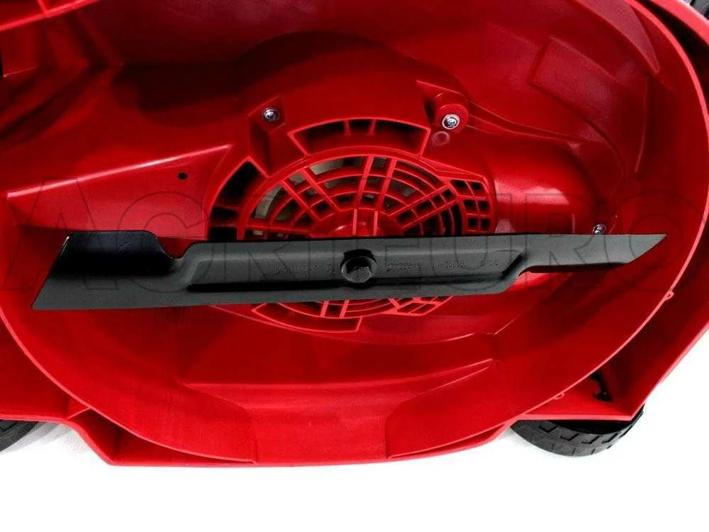 Cette tondeuse à gazon est équipée de deux systèmes de coupe, avec bac en plastique ou avec bac arrière.
