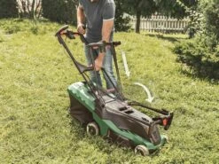 Excellent pour tondre le gazon sans l’encombrement et le poids du moteur thermique et sans fil électrique.
