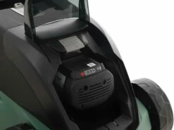Avec la tondeuse à gazon vous recevrez également 1 chargeur rapide et 1 batterie au lithium BOSCH.