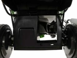 Au centre de la zone frontale se trouve le compartiment pour les batteries Greenworks 40V déjà incluses avec la tondeuse.
