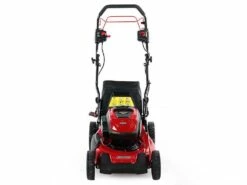 La machine est une traditionnelle 4 en 1, système mulching, à éjection arrière et avec le collecteur de ramassage.