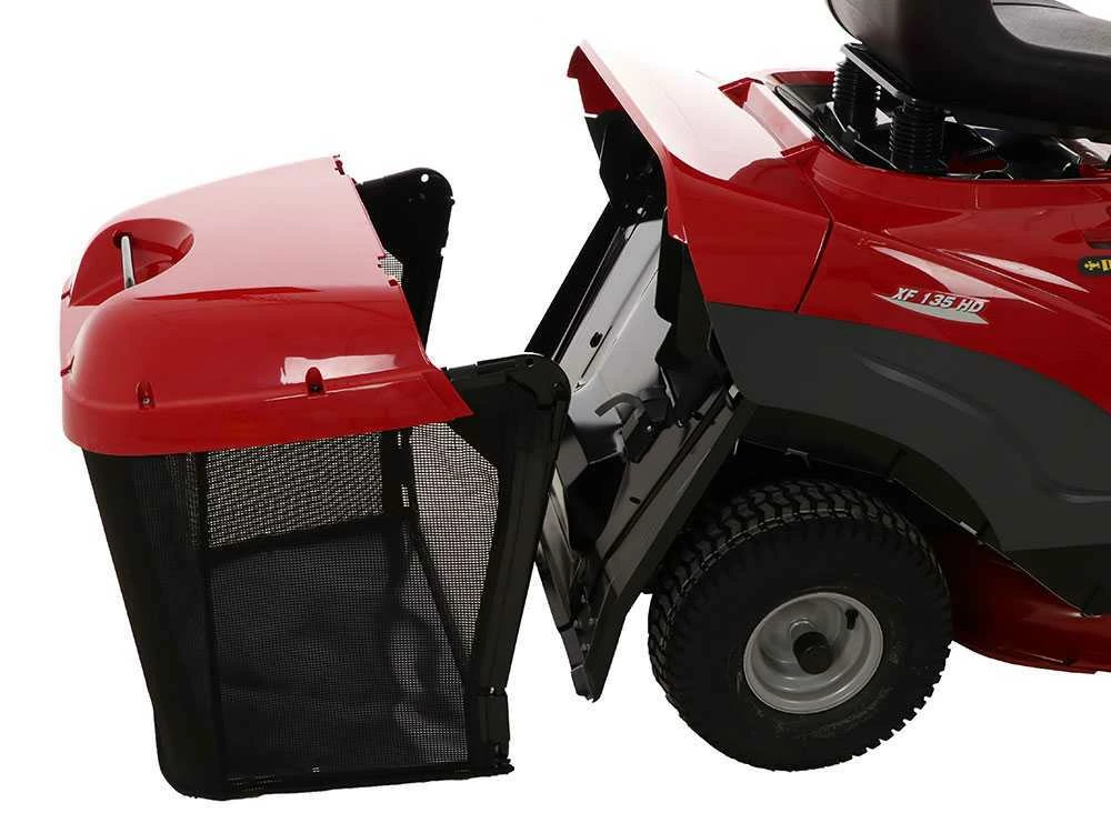 Avec le bac monté, la tondeuse autoportée Castelgarden XF 135 HD pourra récolter l’herbe coupée directement dans le bac. Ceci permet de laisser une pelouse entretenue et de vider le bac à l’endroit désiré. Le vidage du bac s’effectue en démontant manuellement le bac qui est une opération très facile. Le bac est démontable en un instant: il suffit simplement de le soulever vers le haut pour ensuite le retirer de l’emplacement de fixation qui lui est réservé.