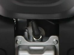 Tout en laissant l’obturateur mulching inséré, de manière à bloquer l’éjection de l’herbe sur la partie arrière, il suffit de soulever le carter noir latéral et d’insérer d’un simple geste le déflecteur latéral inclus.