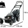 - La tondeuse à gazon dispose d’une lame à ailettes forte charge montée de série qui permet un remplissage optimal du bac de ramassage et garantit la meilleure coupe possible pour le ramassage et pour l’éjection latérale. Grâce à cette lame la tonte de l’herbe un peu humide, haute ou touffue sera facile.