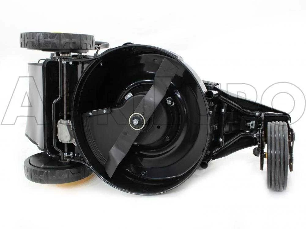 La lame montée est en acier trempé et de type universel, conçue pour accomplir toutes les fonctions prévues sur cette tondeuse thermique.