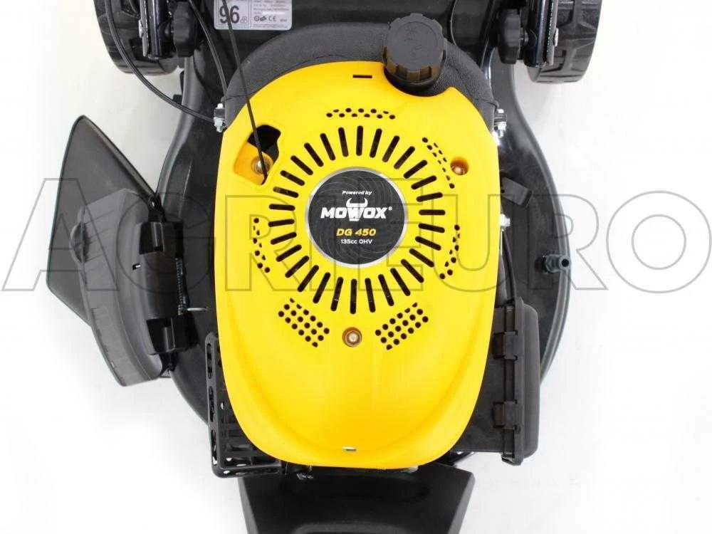 RĂ©alisĂ©e avec un chĂąssis en acier traitĂ© qui prĂ©vient de la corrosion et la rouille, la tondeuse possĂšde une largeur de coupe de 46 cm, et Ă©quipĂ©e dâun moteur thermique Ă 4 temps Mowox DG 450.