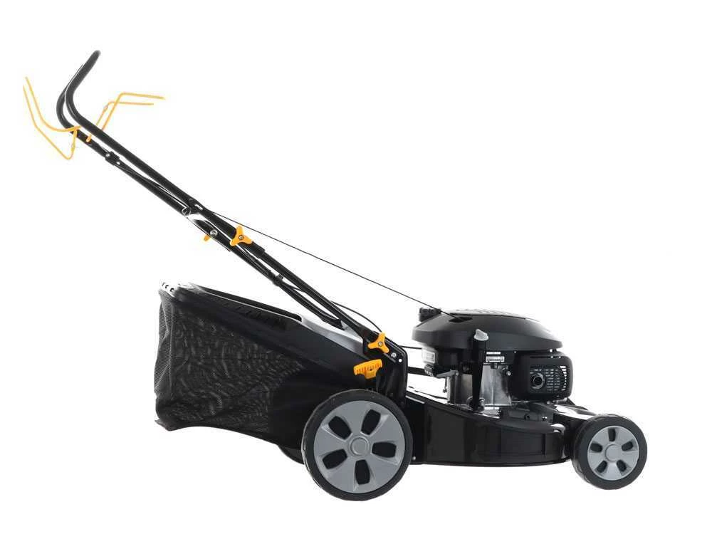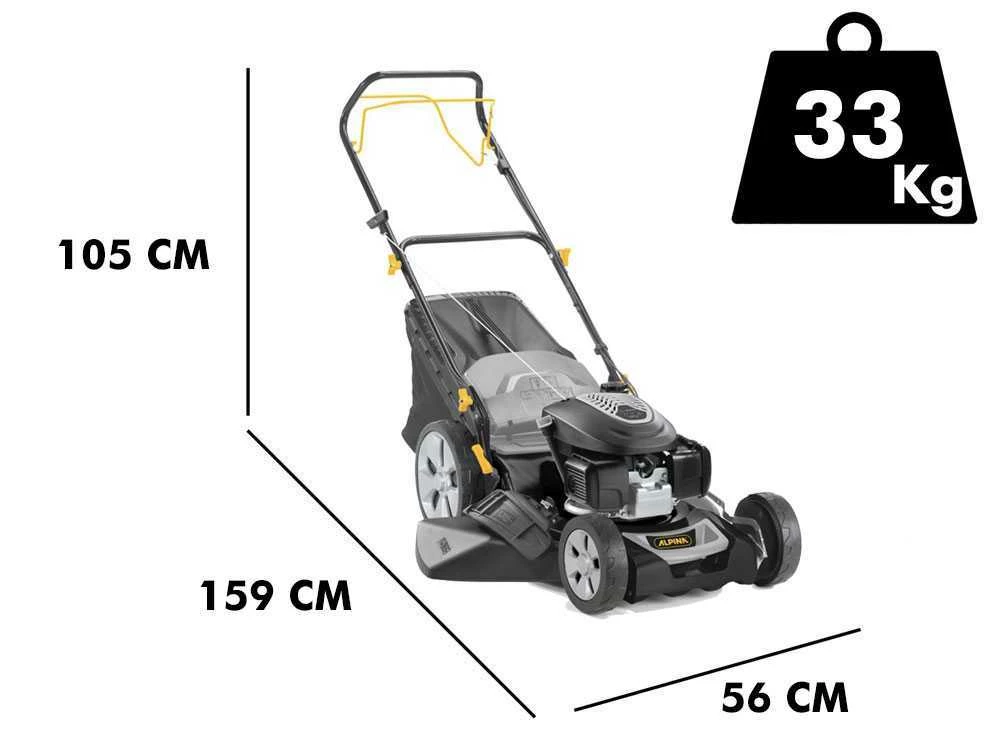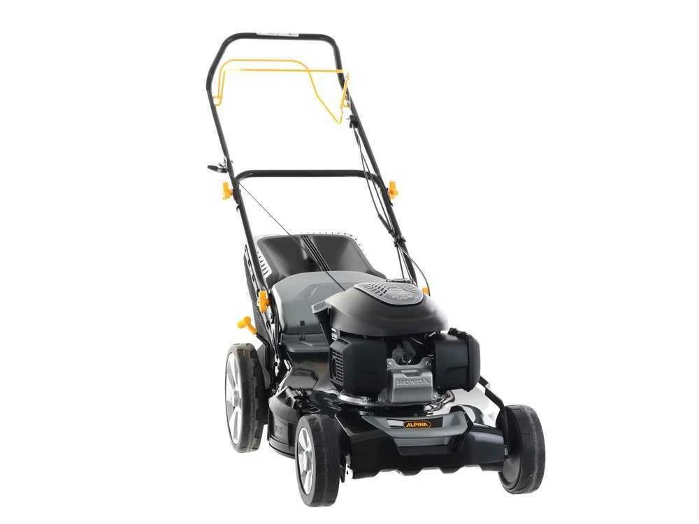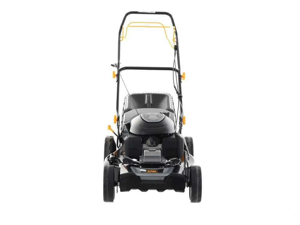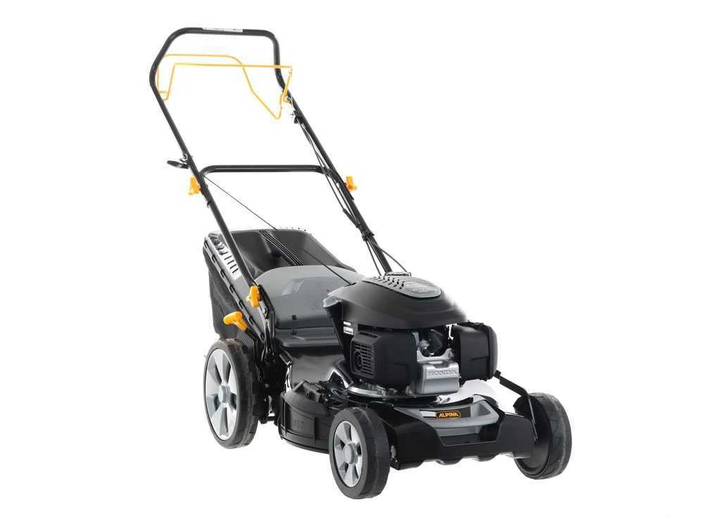 Tondeuse autotractĂ©e Alpina A5 51 SHQ, outil trĂšs pratique pour lâentretien des espaces verts, complet et simple Ă utiliser.