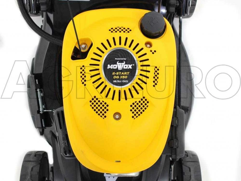 Elle est équipée d’un nouveau moteur produit par la même société Mowox de 98.5 cm3 de cylindrée monté sur le large châssis qui est réalisé en acier. la largeur de coupe est de 43 cm.