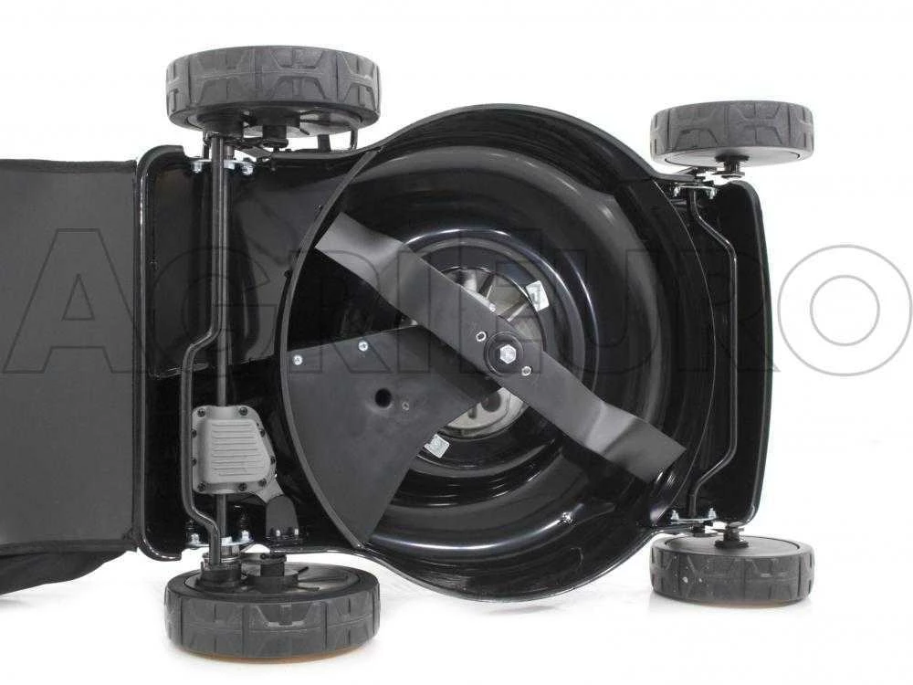 La lame montée est en acier trempé de type universel, adapté à toutes les typologies de tontes prévues pour cette tondeuse à gazon thermique.