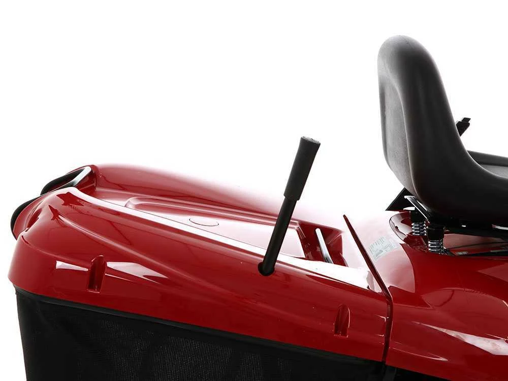 L’embrayage des lames est électromagnétique et s’effectue à travers le bouton rouge à droite du volant. Ce système évite l’engagement par voie manuel avec le levier traditionnel placé normalement sur la majorité des tondeuses, et fonctionne grâce à l’embrayage électromagnétique qui permet une mise en route plus simple et rapide des lames. Aussi simple que d’appuyer sur un bouton.