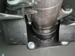 Sur les deux côtés de la plaque de coupe se trouvent deux ailettes de taille considérable, caractérisées par une longue bande de soudure, positionnées pour augmenter la structure et la résistance aux chocs et aux secousses de l’ensemble du système de coupe et du rotor.