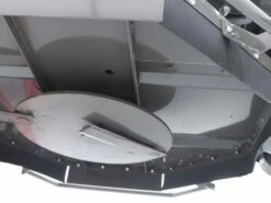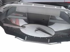 Sur les deux côtés du plateau de coupe se trouvent deux ailettes de taille considérable, caractérisées par une longue bande de soudure, positionnées pour augmenter la structure et la résistance aux chocs et aux secousses de l’ensemble du système de coupe et du rotor.