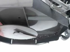 Le plateau de coupe est équipé de 4 roues anti-scalp, 2 à l’avant et 2 à l’arrière, ce qui permet au plateau de coupe de mieux avancer sur la pelouse et d’avoir une adhérence plus régulière.