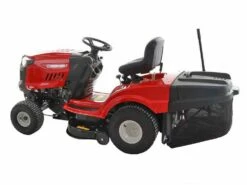Tracteur tondeuse avec bac de ramassage de 240 l avec possibilitĂ©, en achetant les accessoires vendus sĂ©parĂ©ment, d’effectuer aussi une coupe mulching ou Ă Ă©jection arriĂšre.