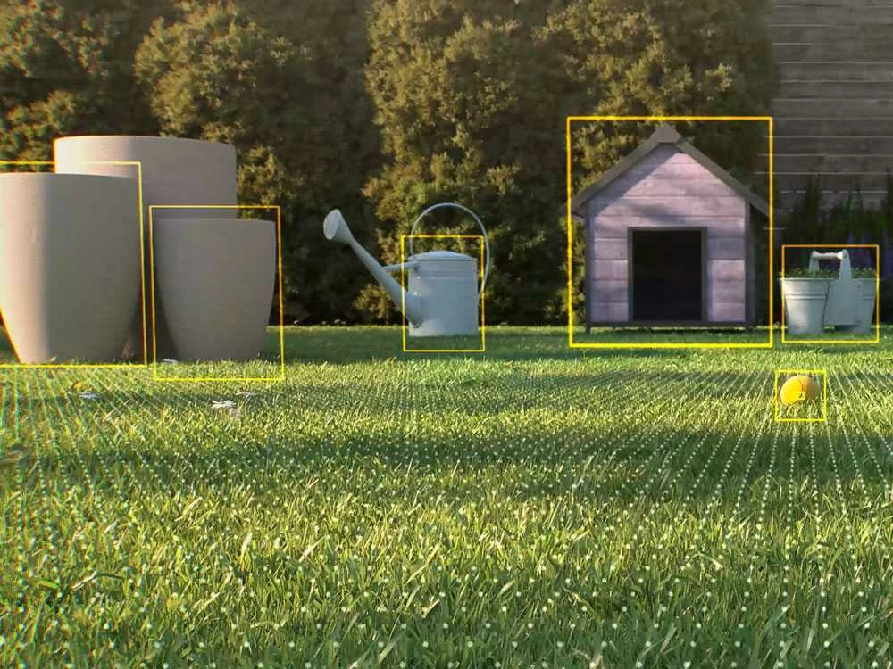 La caméra est montée sur le dessus du robot, les images capturées sont traitées par l’intelligence artificielle à une fréquence d’une image toutes les 0,05 secondes, ce qui permet à Vision d’identifier les obstacles et de toujours prendre la bonne décision, optimisant ainsi le travail de tonte de la pelouse.